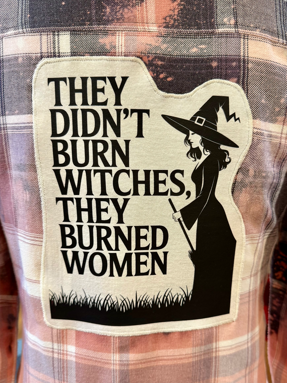 Upcycled Bleached Flannel - They Didn’t Burn Witches - Women’s Small